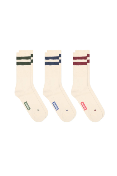 Healthknit Socks 3-Pack - Off White/Green/Navy/Burgundy
