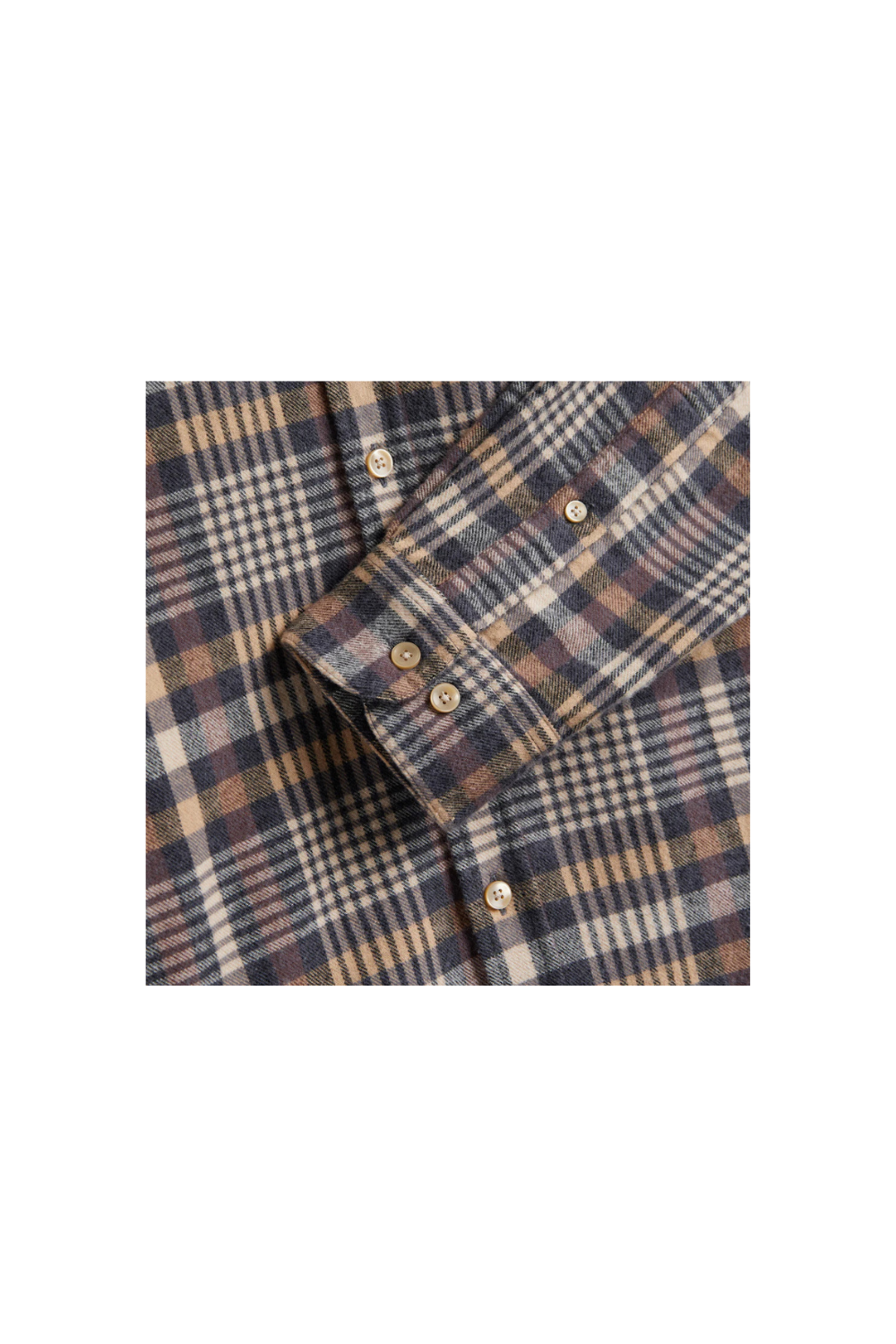 A relaxed fit 100% woven shirt with Mother of Pearl buttons and button down collar.