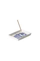 The Theory and Practice Incense Tray is made from porcelain and can hold one incense stick. The item features an embossed graphic on the surface and a Script Logo on the base.