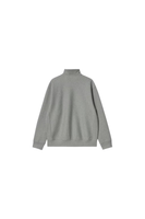 The Half Zip American Script Sweatshirt is constructed from a 12.3 oz cotton-polyester blend and brushed for extra softness and warmth, without losing breathability. The garment features a highneck with a zipper and a small logo. Appears in a loose, boxy silhouette.