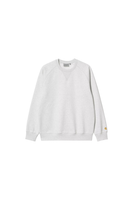 The Chase Sweatshirt is constructed from heavyweight polycotton fabric in a regular fit. The fabric has also been brushed, giving it a fleece-like backing. The item features raglan sleeves and is detailed with flatlock stitching. An embroidered 'C' Logo appears on the left sleeve.