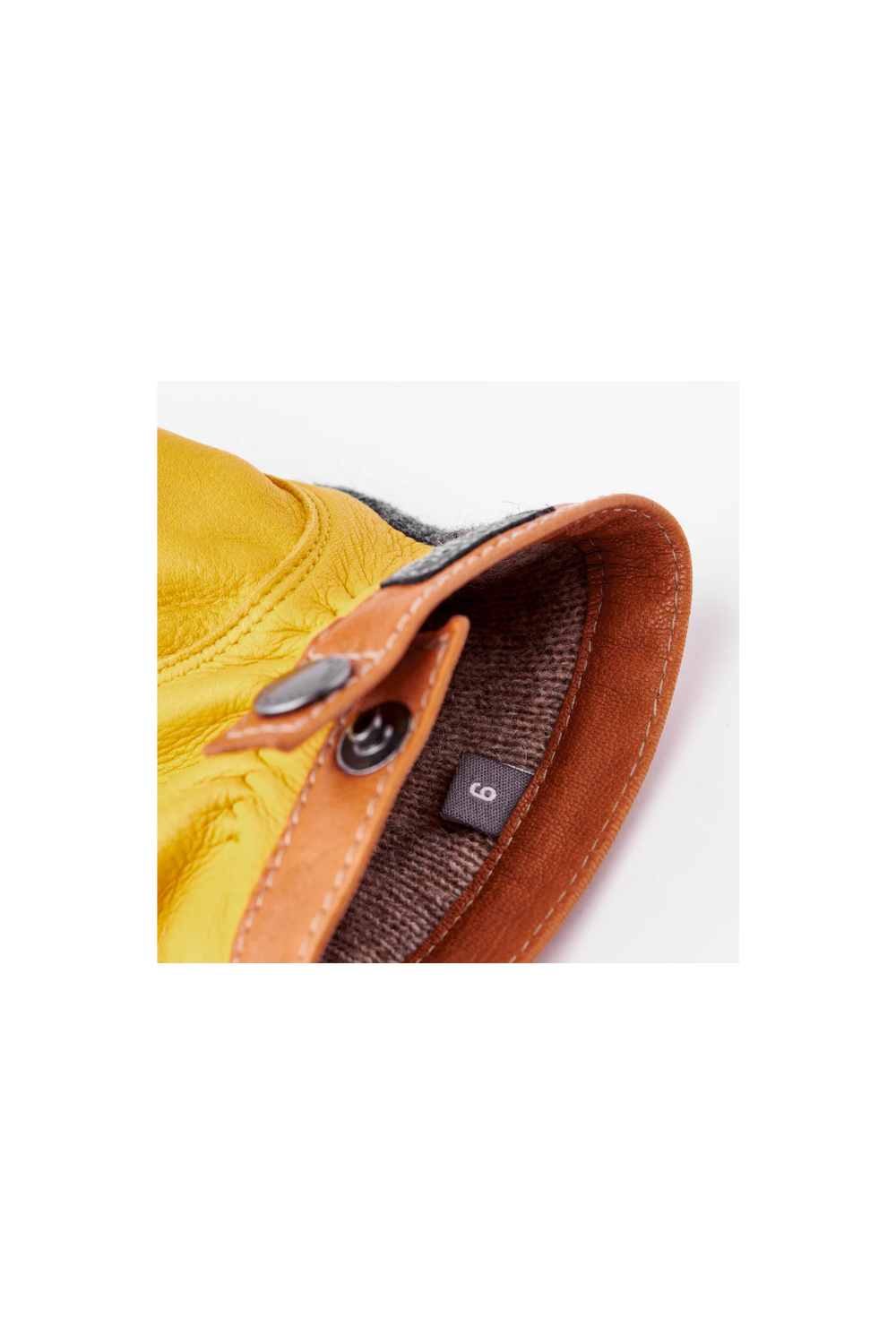Hestra Deerskin Tricot Gloves in Charcoal and Yellow