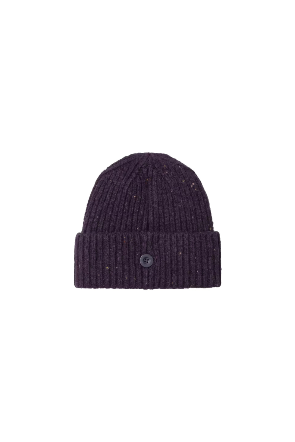 The Anglistic Beanie is knit from a tactile blend of lambswool, cotton, and Acrylic yarn in a stretchy rib stitch, and features a subtly speckled look throughout. Its cuff is detailed with a woven Square Label on the front, and a fixed faux-horn button at the back.