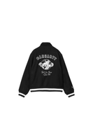 The World Class Varsity is made from heavyweight, poly-wool felt with a diamond-quilted lining. It has two piped pockets on the front and a chest pocket on the inside. Embroidered graphics and patches appear throughout.
