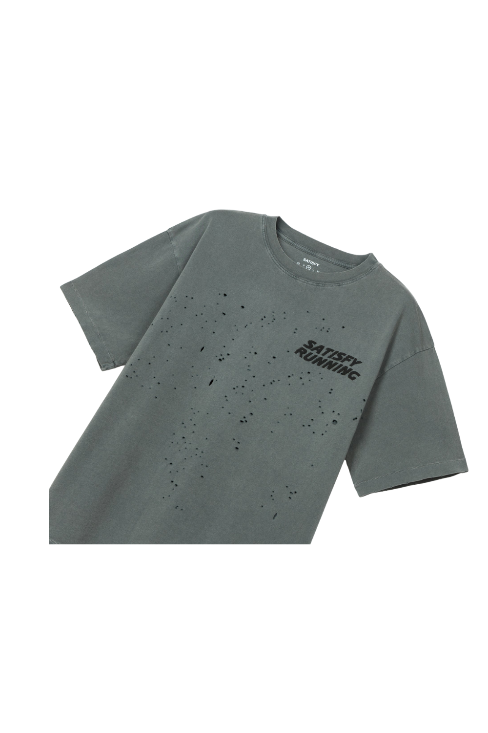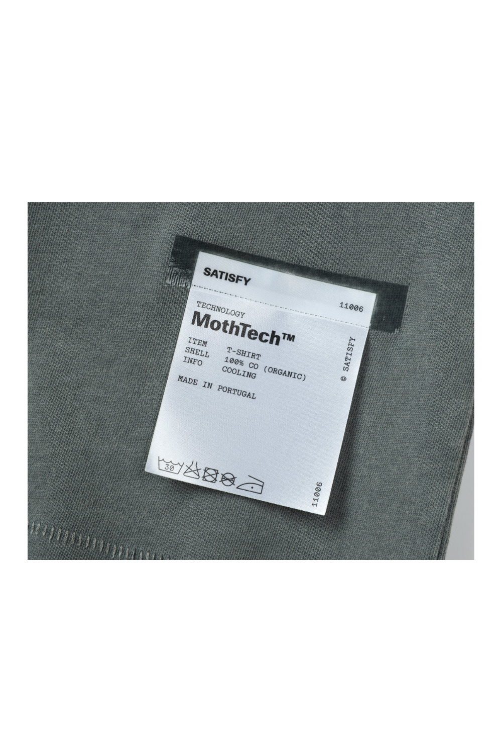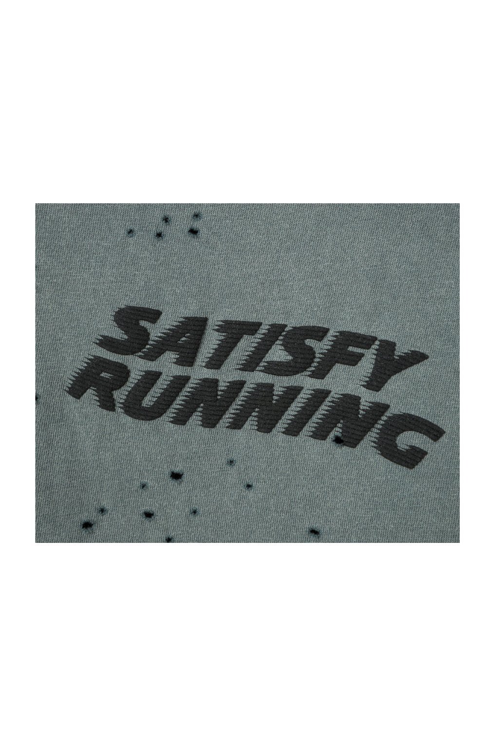 When distance builds, effort shows. Heat escapes and the mind follows. 175 grams of organic cotton, aged and ventilated for exploration without distraction. It's OK to run in cotton. MothTech™ is inspired by cotton that’s been in dialogue with time. Softened. Weathered. Each hole is laser-cut and hand-opened, creating airflow where the body needs to breathe. A pattern mapped for movement. A rolling hit of motion. The SATISFY wave, rendered in puffy ink.