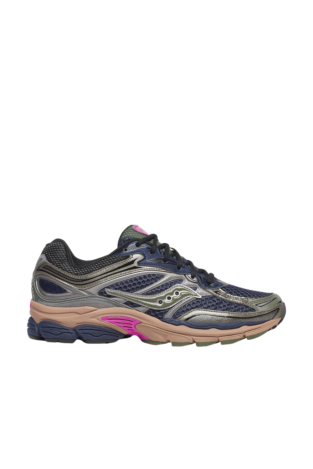 The 2000s called. This 2010 highlight of the ProGrid Omni 9 adds breathable mesh and synthetic details to functional and utilitarian outdoor considerations. It's tone-on-tone metallics, true iridescence, and reflectivity for the books. A recycled lining and footbed add a touch of sustainability.