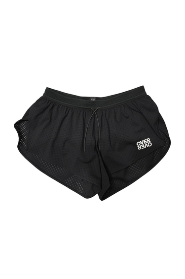 OVER OVER black perforated 360 comfort stretch track short silhouette.