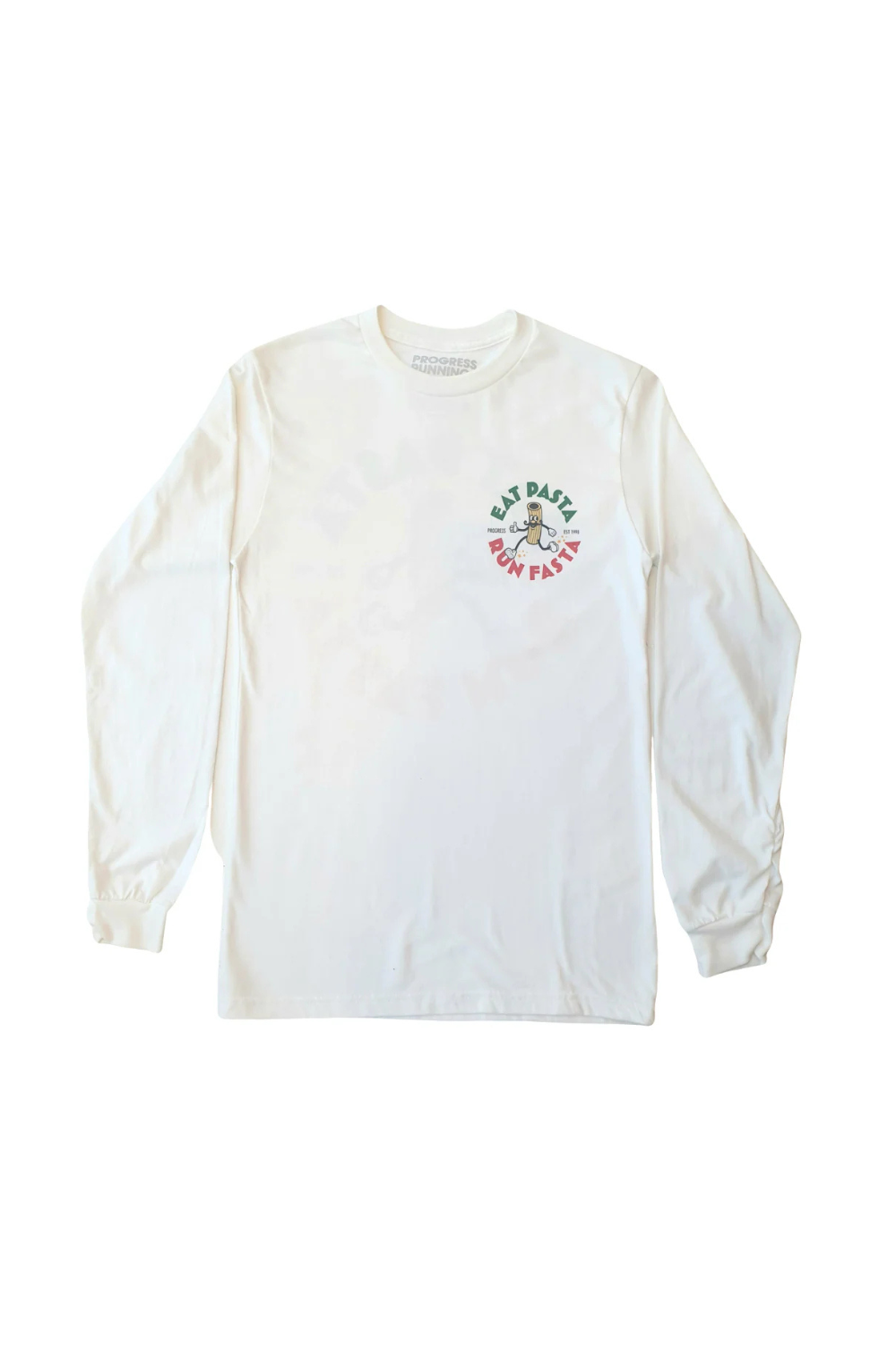 Progress Running Club 'Eat Pasta' Long Sleeve T-Shirt - White