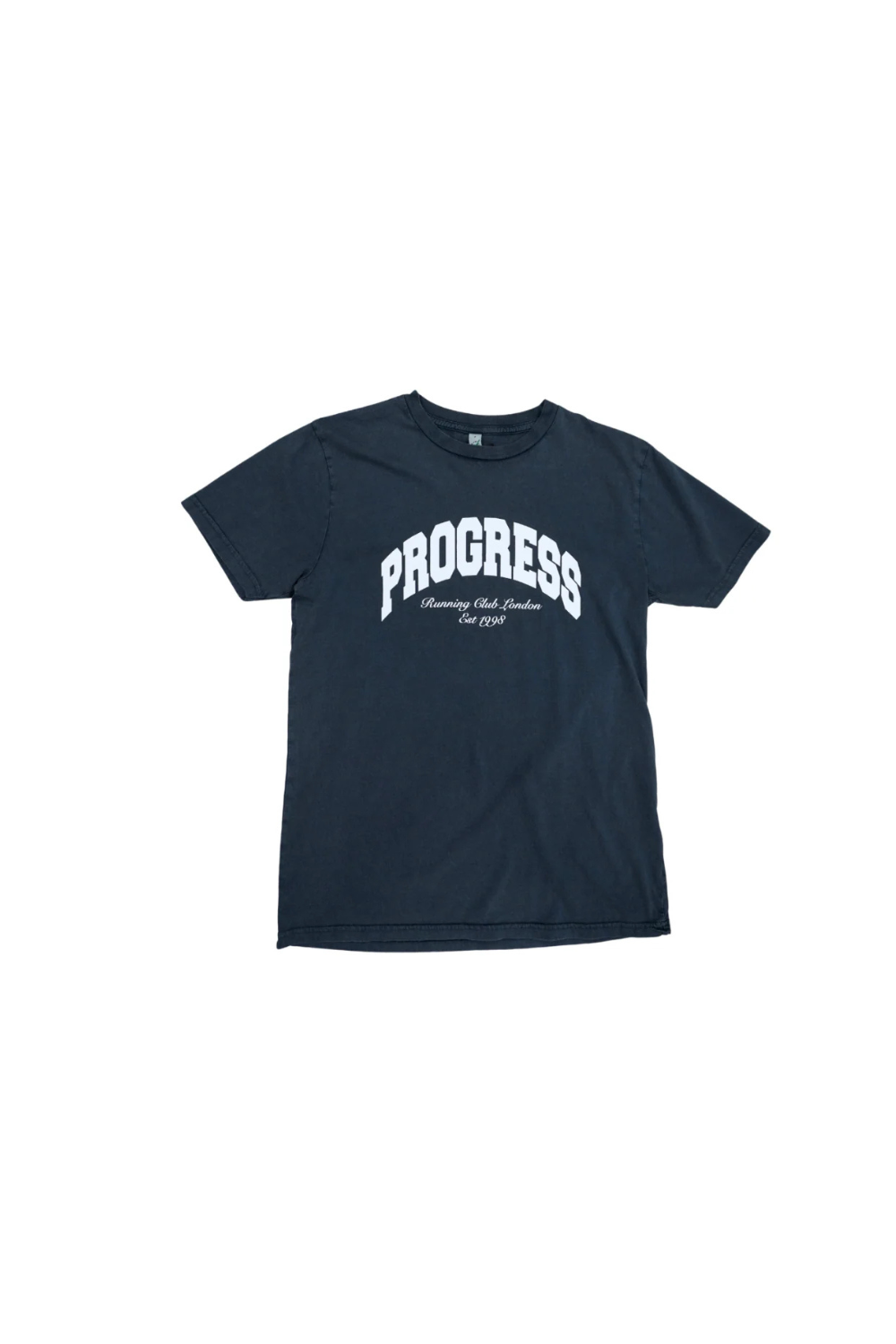 Progress Running Club 'Progress' Arc Logo Short Sleeve T-Shirt - Navy / White