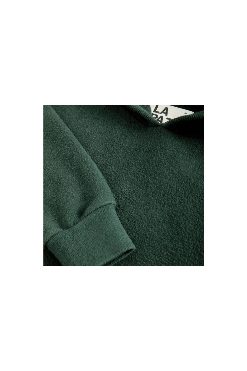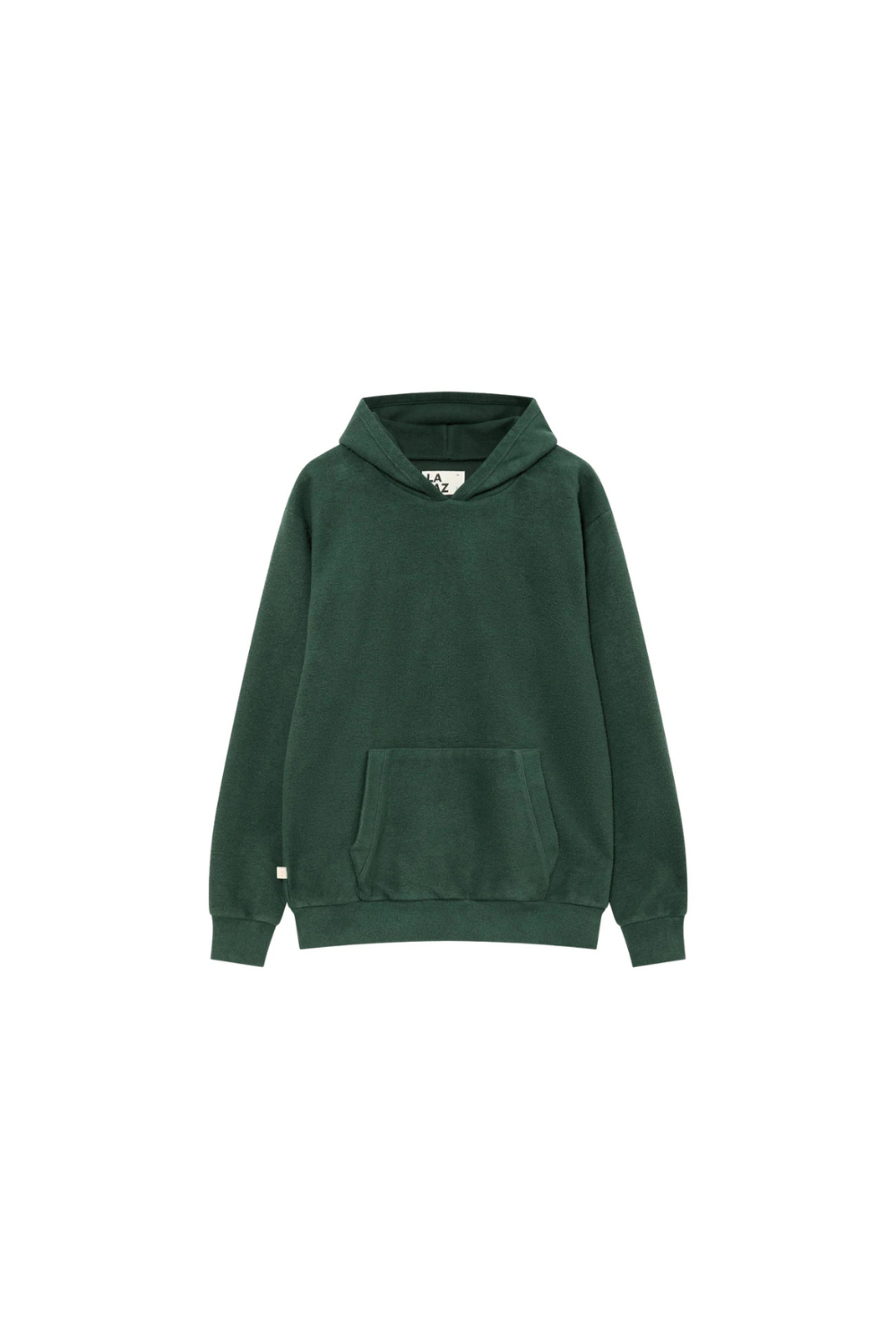 A warm hoodie made of a cozy fleece for extra comfort. These pieces are made with recycled yarns.