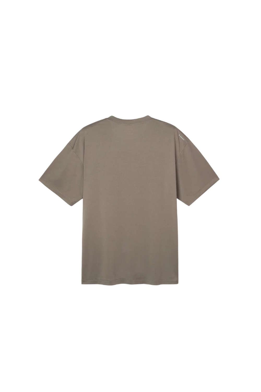 Recycled jersey from Japan. Built to hover around the body, silk-soft, with natural stretch in every direction. Wicks moisture, resists odour, protects against UV. Anti-wrinkle, anti-snagging. Fabric that flows and breathes as lightly as it wears.