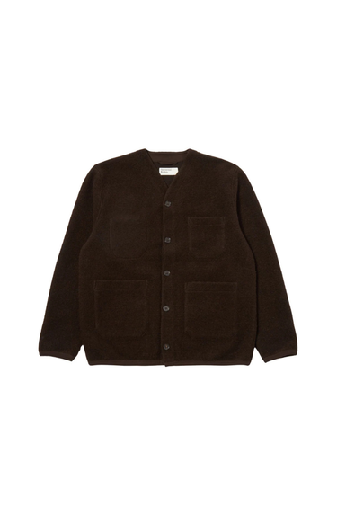 A UW classic, easy-to-wear cardigan has a self-bound button front, three outer patch pockets and a fourth on the inside. With cotton rib-bound cuffs and hem.